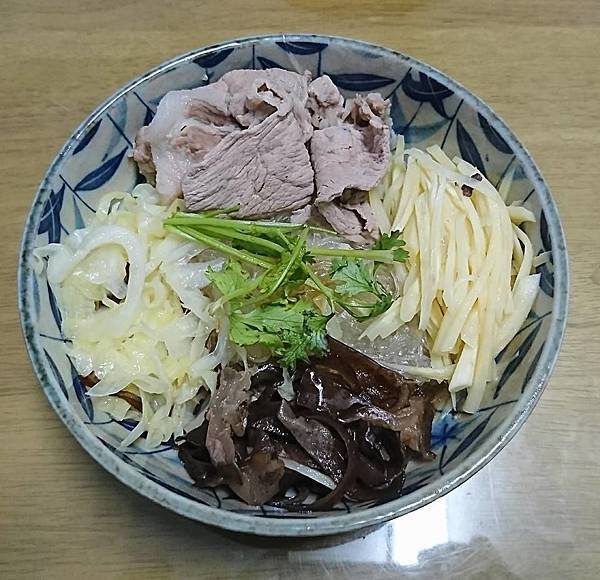 從顏色跟營養並顧及整體風味來說,我挑選的是黑木耳、筊白筍、高麗菜跟一點香菜。
