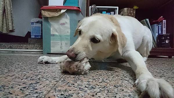 PS : 煮過的豬大骨就便宜包子跟罐頭了。但牠們其實也啃不動,所以也只是讓牠們舔一舔豬油還有啃上面的瘦肉過過癮;豬骨頭最後還是要丟掉的。